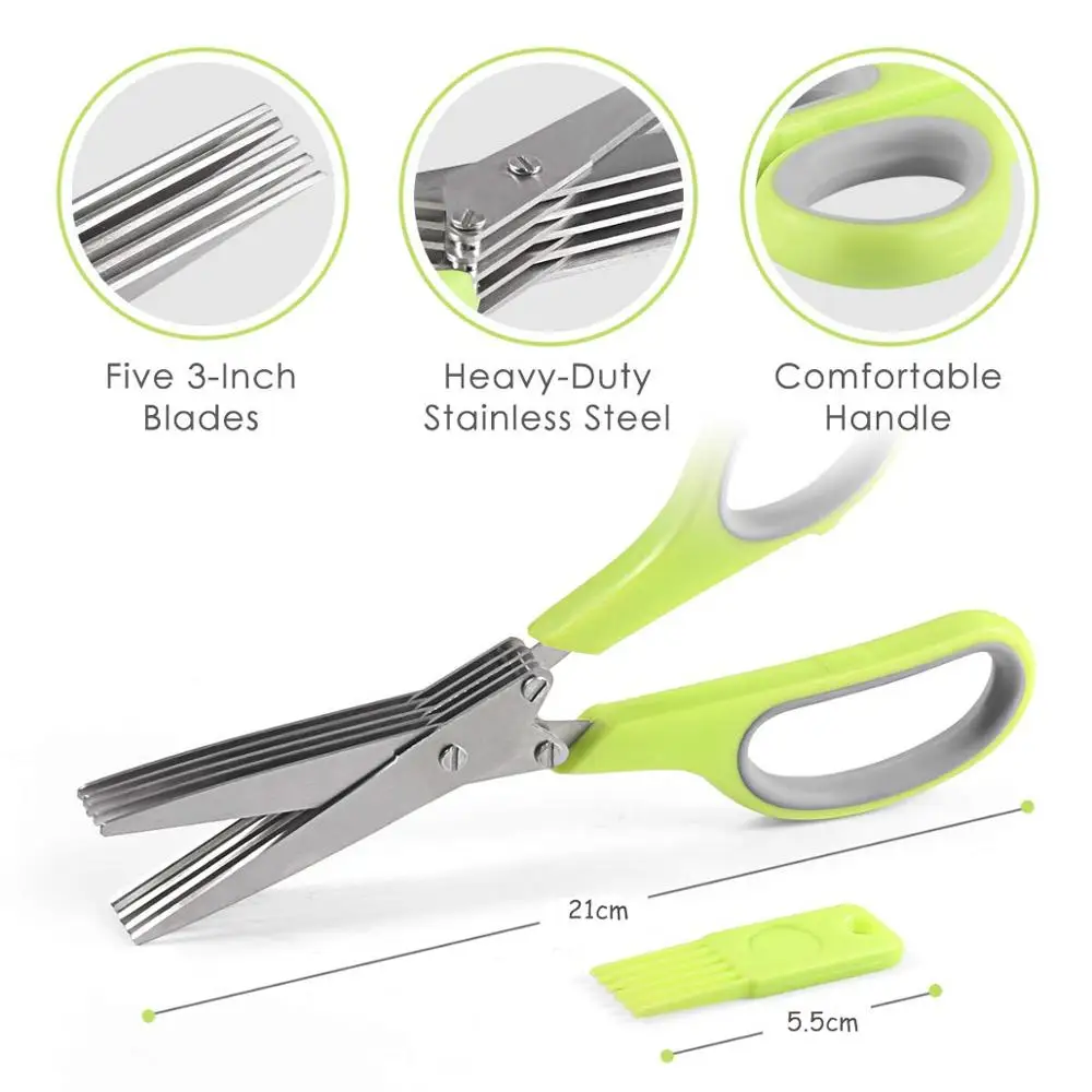 Ножницы для трав LMETJMA KC0271 из нержавеющей стали с 5 лезвиями, ножницы для лука и травы с чистящей щеткой, кухонные ножницы для резки