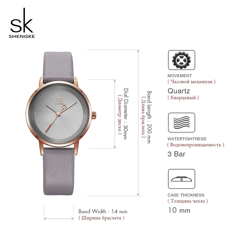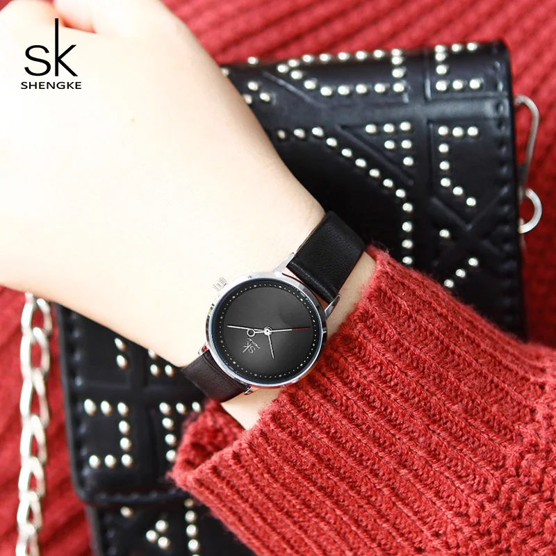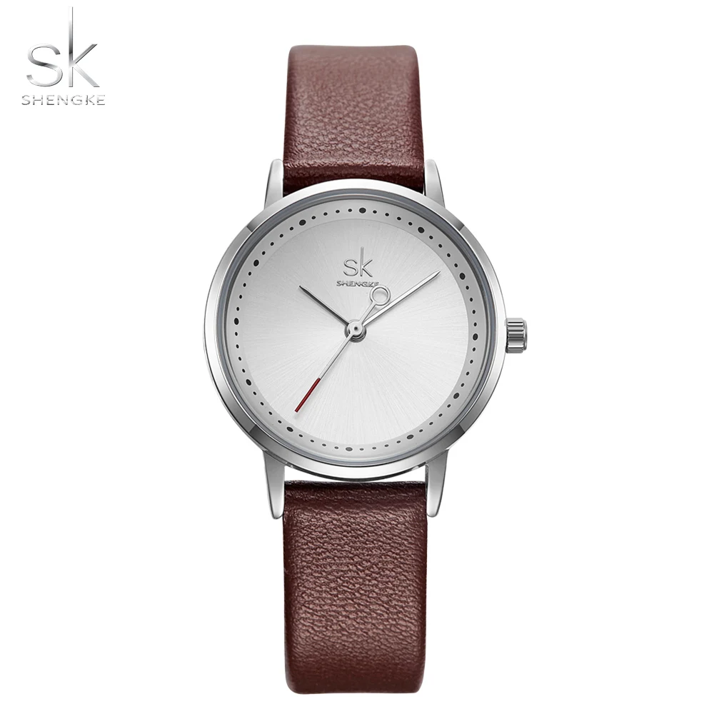 Часы Shengke женские кварцевые с кожаным ремешком, модные повседневные дизайнерские