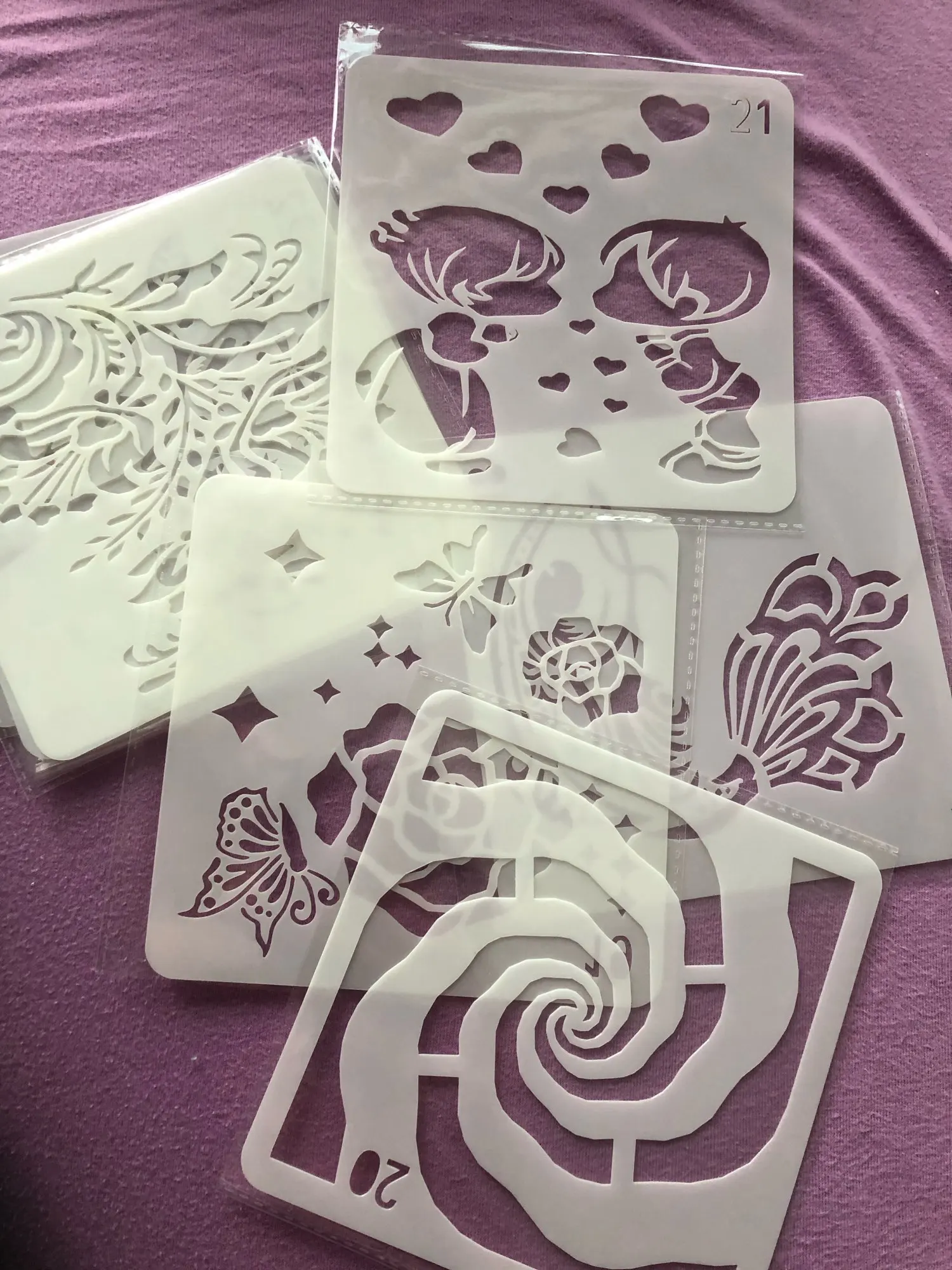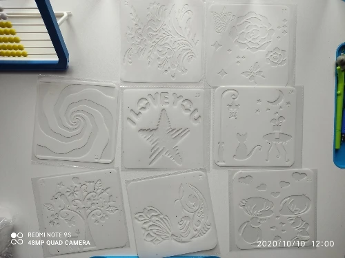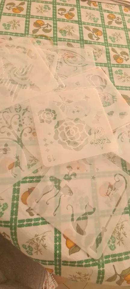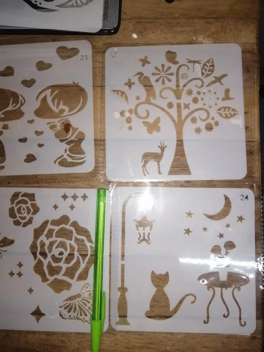 Items received in good condition, well-packed and according to the description. The A4 sized stencils are good enough for bags/tshirt which Im bery satisfied.
