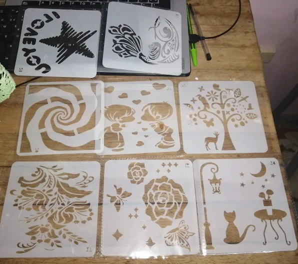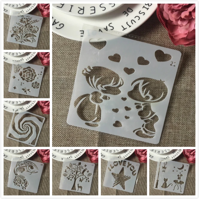 Трафареты для рисования детей, 8 шт.компл., 13 см, с изображением кота, цветка, декоративные открытки, раскраска для скрапбукинга