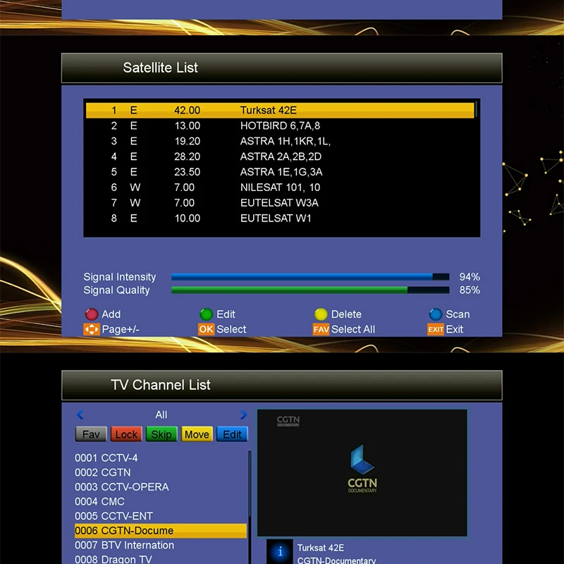 Редактирование каналов, различные функции редактирования каналов (избранное, перемещение, блокировка, пропуск, удаление, переименование, поиск, сортировка)