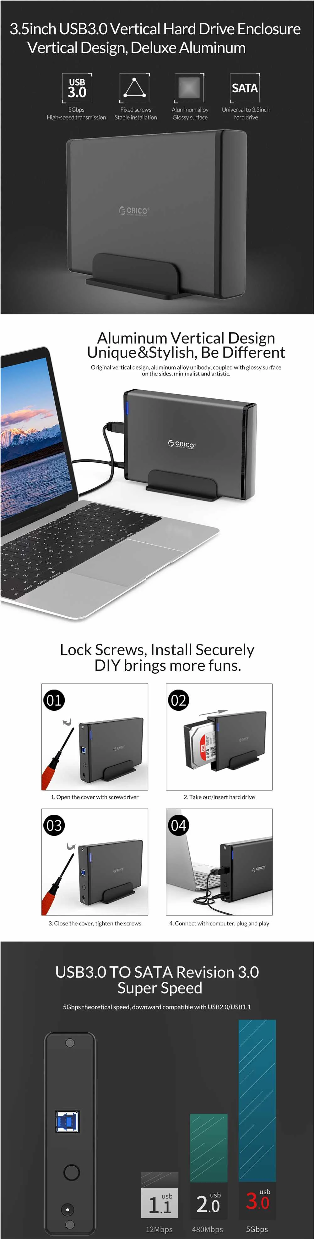 ORICO 7688U3 3,5 дюймов USB 3,0 к SATA 3,0 внешний жесткий диск корпус с док-станцией SATA HDD док-станция