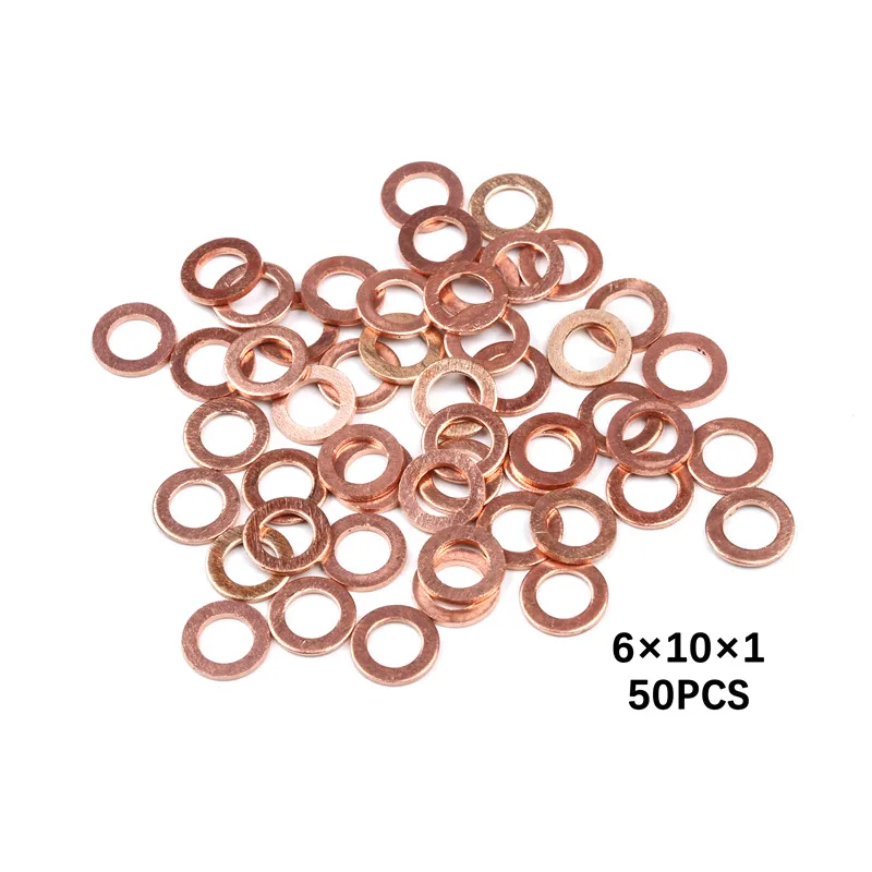 50 шт., 6 размеров, медная уплотнительная шайба, твердое уплотнительное кольцо, сливное масло для лодки, сокрушенная шайба, плоское уплотнительное кольцо, инструмент, аксессуары