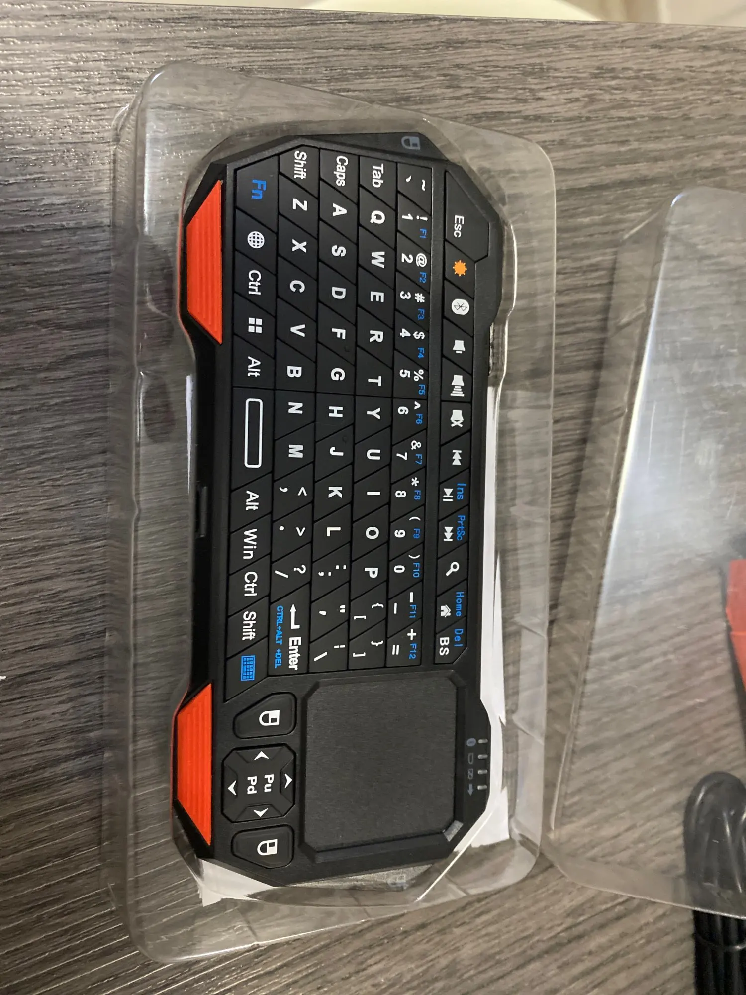 Мини клавиатура. Полностью рабочая, управление устройствами через блитус. Подключается к планшетам, смартфонам(управлял ксяоми режим 8 про, даже стрелка мышки появилась на дисплее), может и к другим устройствам. Единственное: нет раскладки русского языка, т е. на клавишах только английский, а вот можно ли как на компе комбинацией переключить язык пока негде проверить(по крайне мере с телефоном не сработало, а на компе блитуса нет)
