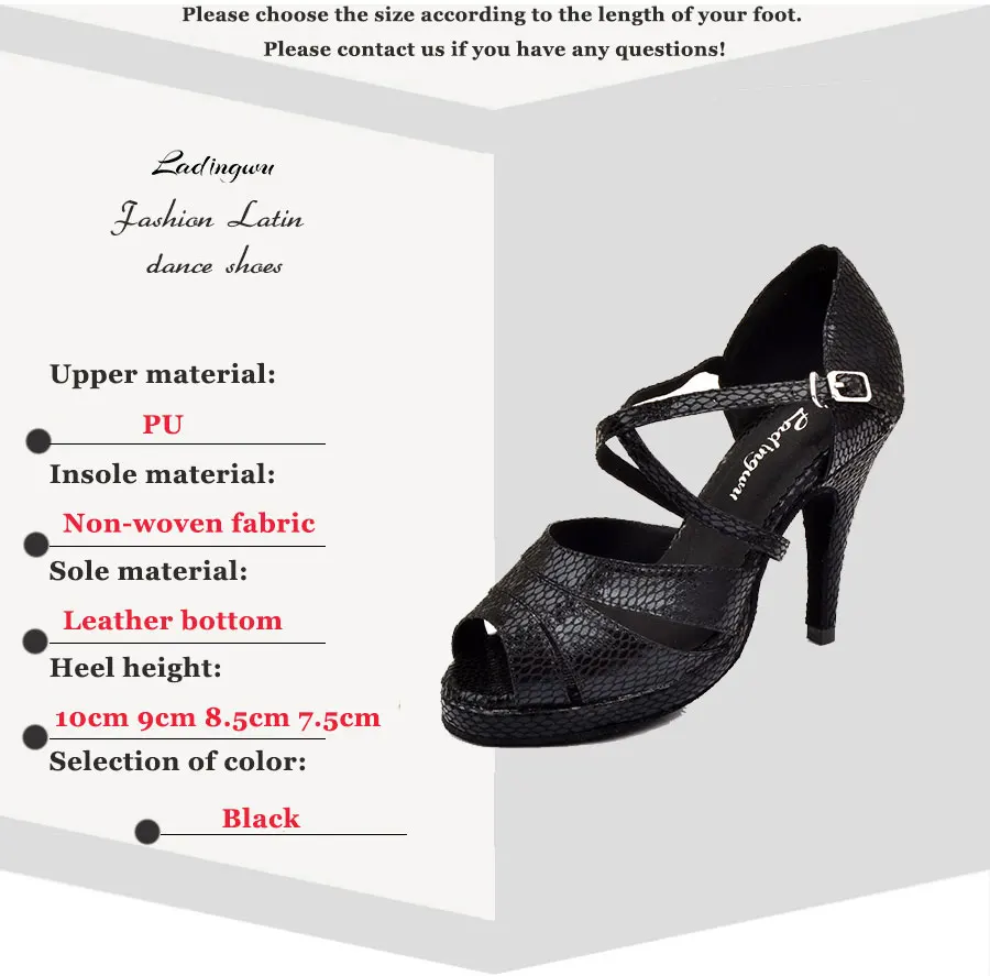 Ladingwu танцевальные туфли для сальсы женские водонепроницаемые туфли для латинских танцев на платформе женские туфли для бальных танцев Танго черные туфли из искусственной кожи со змеиным узором
