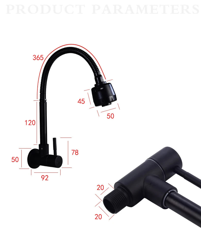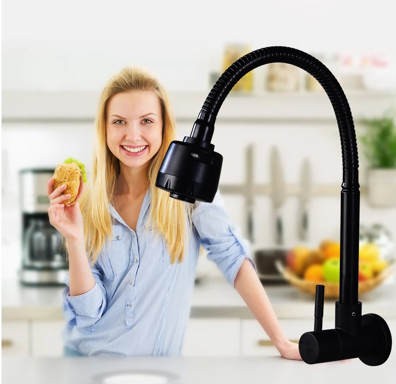 Настенный черный смеситель из нержавеющей стали для кухни, кухонный кран, одно отверстие, холодная вода