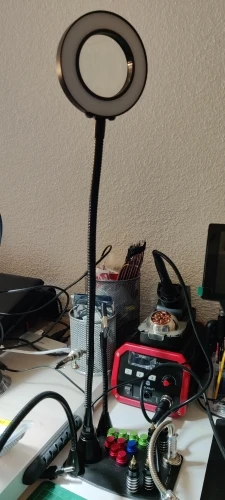 Увеличительное стекло довольно длинное, как вы можете видеть на фотографиях, но хорошо, если у вас есть магнитная пластина далеко от рабочей области. Увеличение очень хорошее, далеко от моих ожиданий. Я ожидала плохого качества увеличения. Светодиодная лампа очень мощная для моих нужд. Также мне очень нравится изменение цвета, потому что я использую более часто нейтральный или теплый свет. Доставка была быстрой.