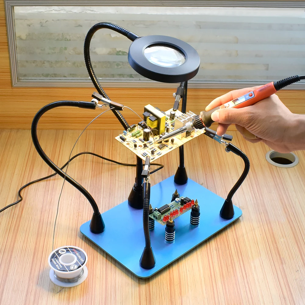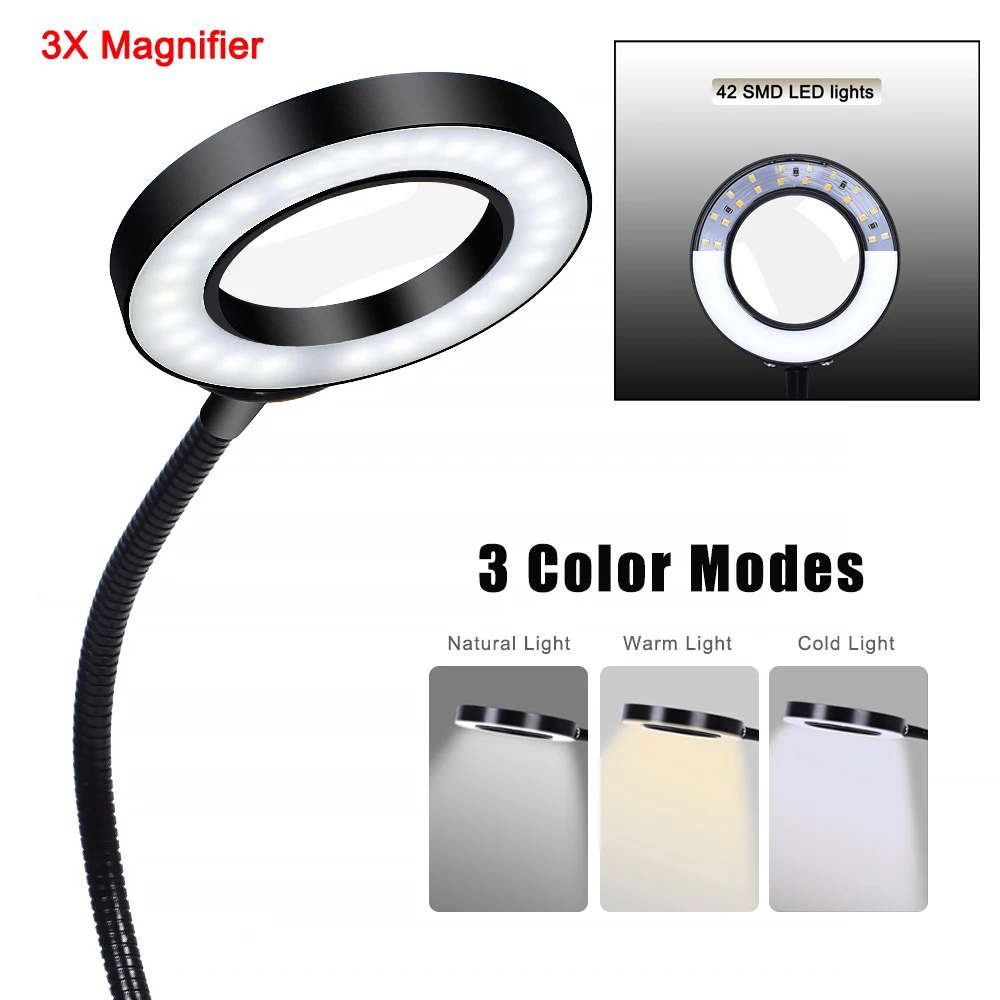 NEWACALOX USB Сильный магнитный 3X увеличительное стекло светодиодный светильник с подсветкой Лупа Гибкая рука для чтения верстак пайки