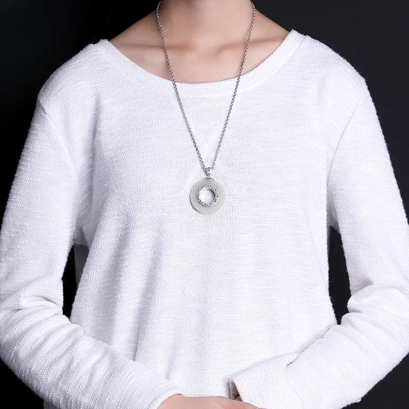 Подвеска женская из серебра 925 пробы, без цепочки, с белым нефритом