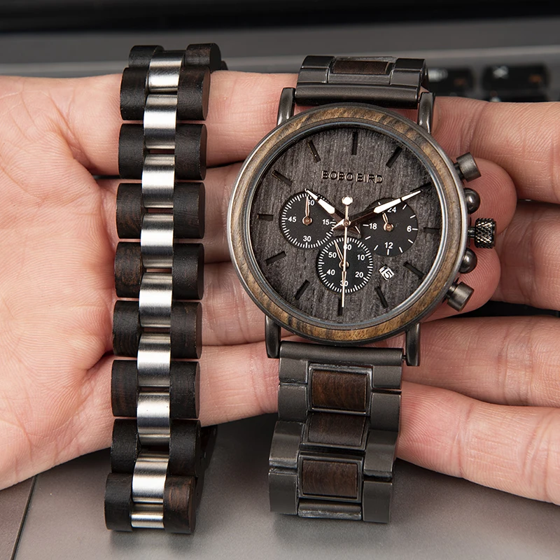 Мужские часы с хронографом BOBO BIRD, деревянные брендовые Роскошны...