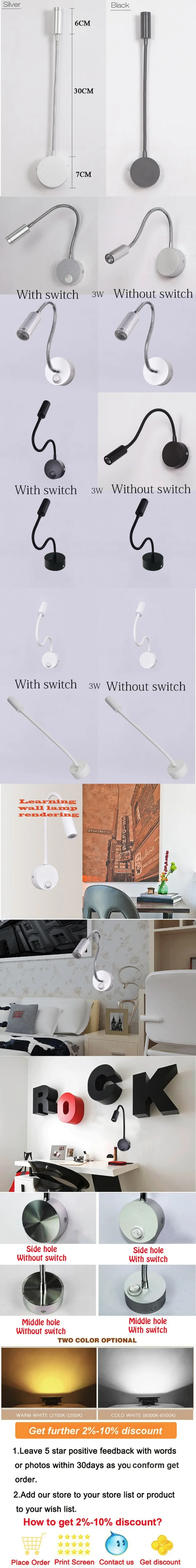 Светодиодные шланги 3 Вт Настенный светильник гибкий домашний отель прикроватный настенный светильник для чтения Современный модный книжный светильник s алюминиевые светодиодные лампы AC 110 В220 В