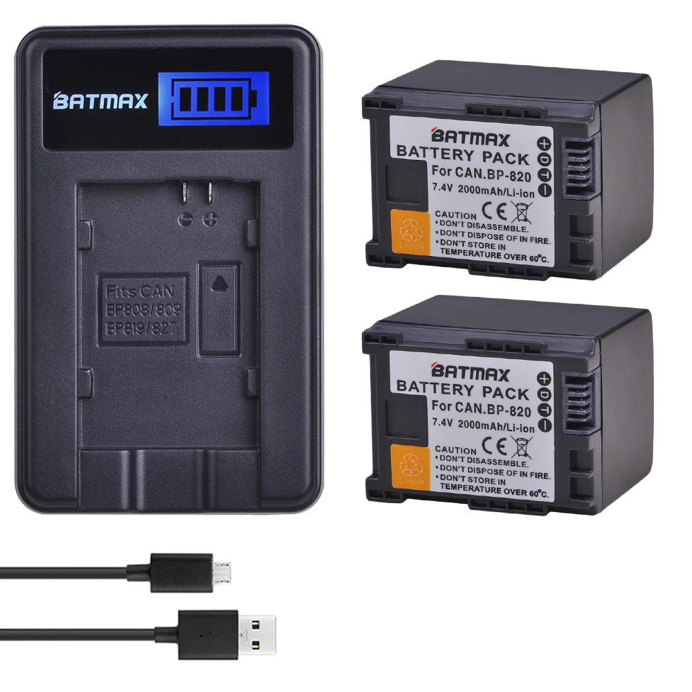 Аккумулятор для камеры Batmax BP820, 2 шт., зарядное устройство с ЖК-дисплеем и USB, фотокамера Canon VIXIA HF G30, G40, XA20 и XA25, батареи для видеокамер