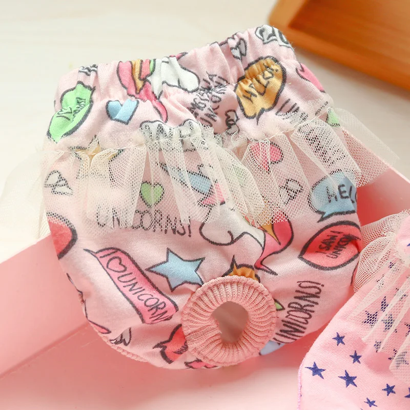 Трусики принцессы для собак, милые розовые Хлопковые Штаны для домашних животных, подгузники с котом для девочек, физиологические гигиенические аксессуары