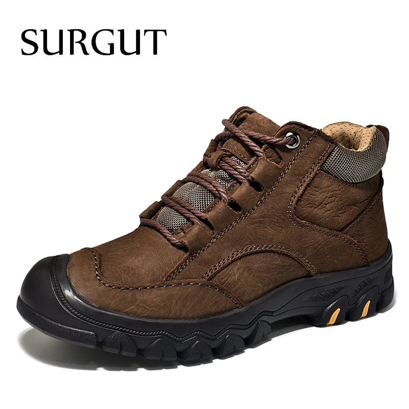 Мужские ботинки в стиле милитари SURGUT, кожаные уличные тактические кроссовки с круглым носком, армейские ботинки для пустыни, повседневная обувь, размер размера плюс 38-46, для зимы