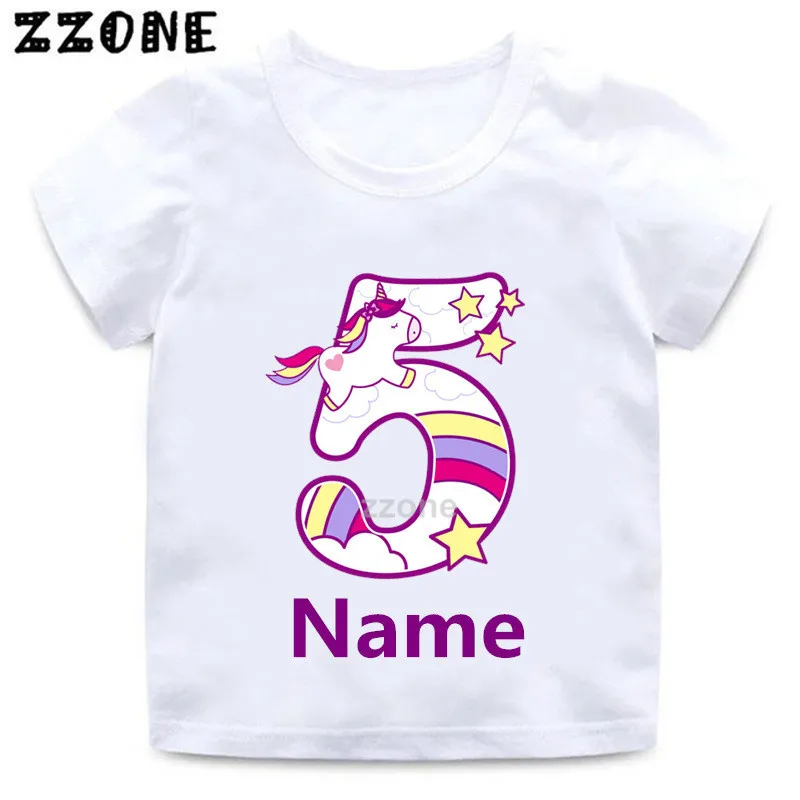 Футболка с принтом единорога для мальчиков и девочек на день рождения, номер 1-9, Забавная детская футболка с мультяшным принтом, детская одежда для подарка на день рождения, ooo5238