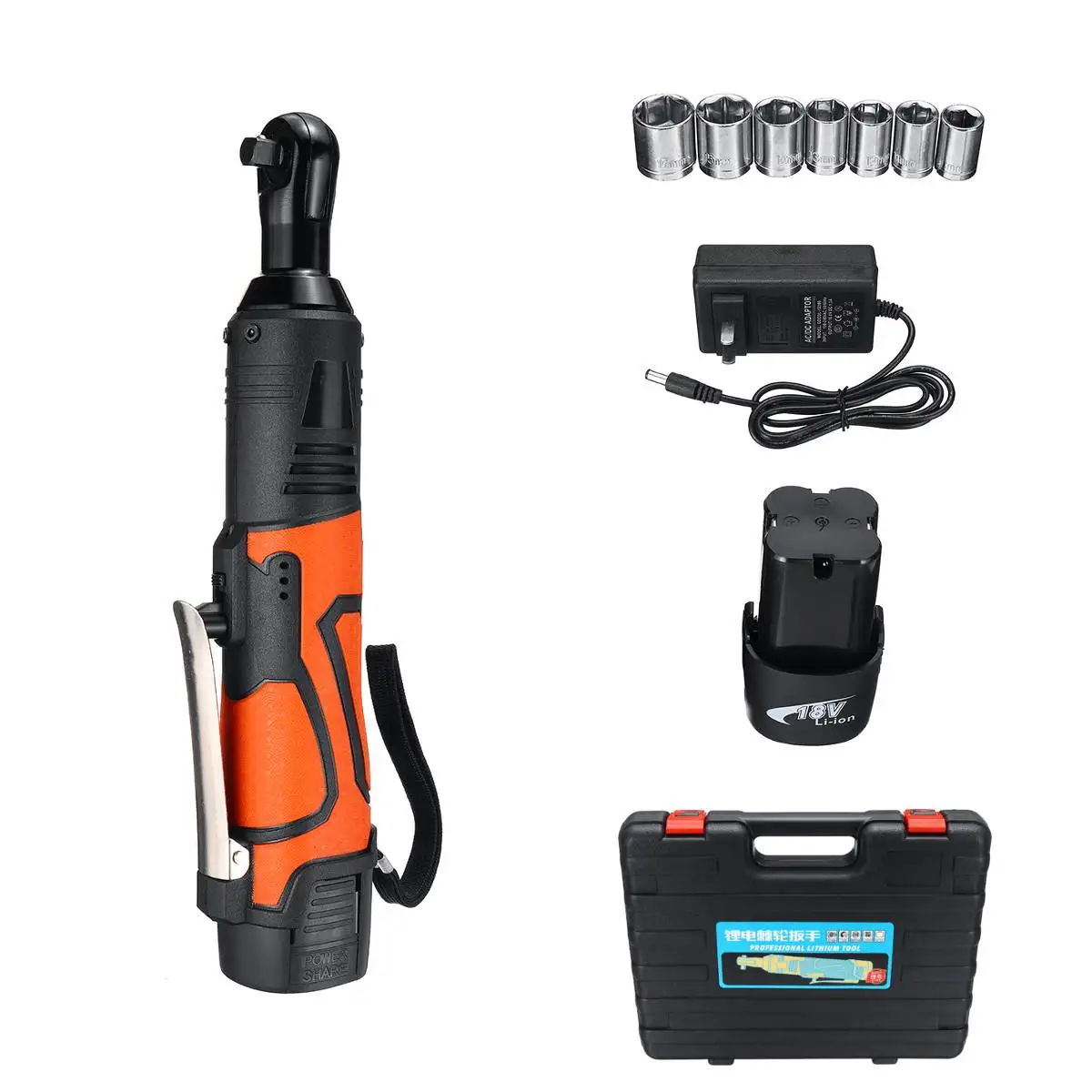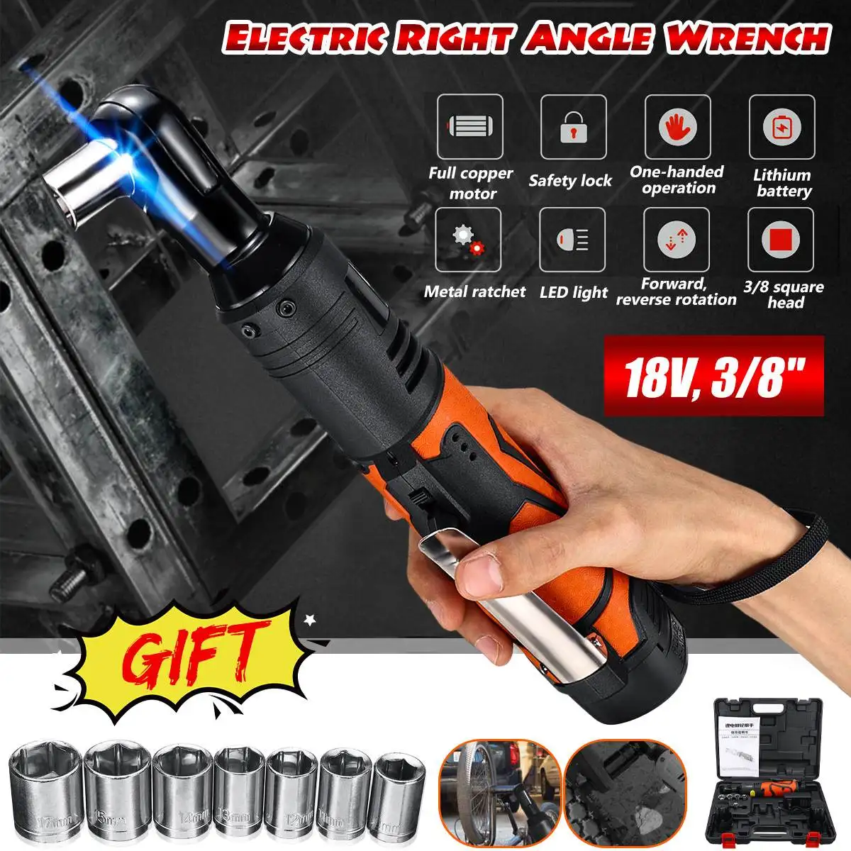 Беспроводной 3/8 ''Электрический 18V 60N.m перезаряжаемый трещотка 90 ° правый угол гаечный ключ набор портативный