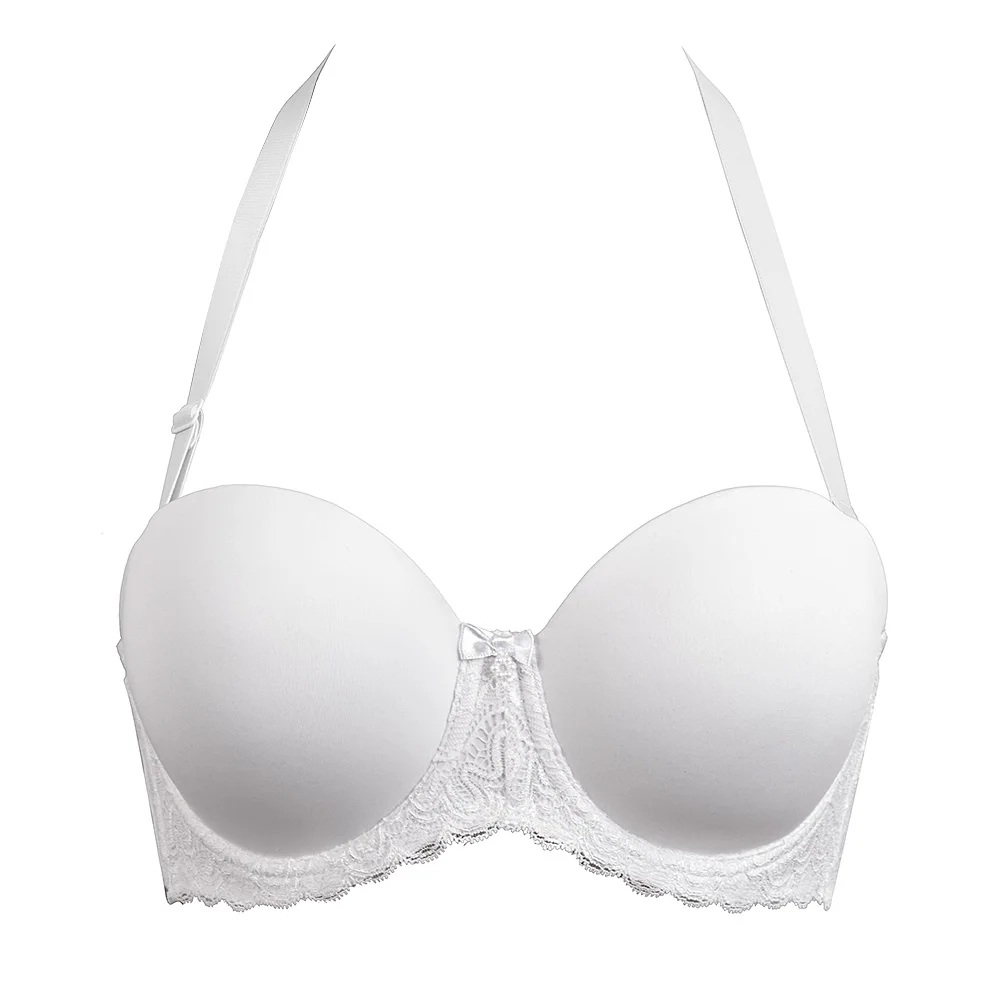 Бюстгальтер женский кружевной, без бретелек, пуш-ап, с тонкой чашеч...