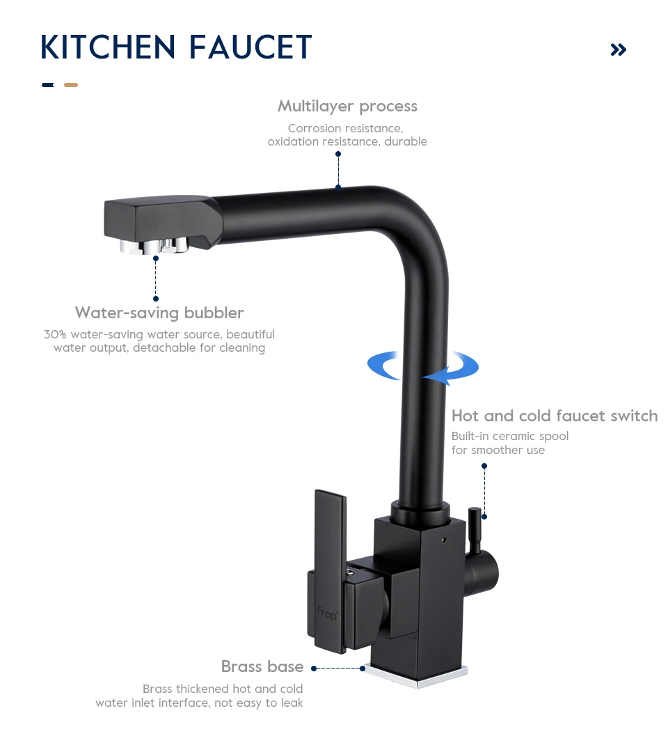 Фильтр Frap, кухонный смеситель, питьевая вода, одно отверстие, черный, горячая и холодная чистота, водяные раковины Tap Y40103-1-2