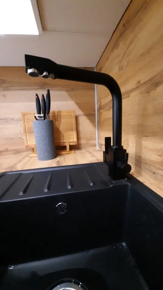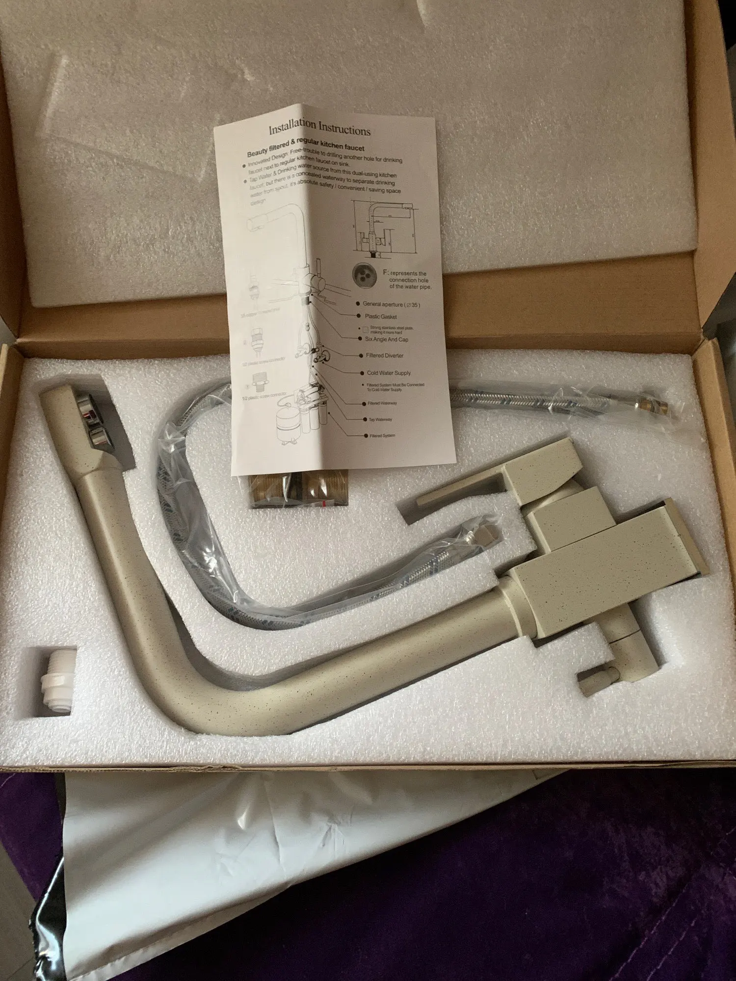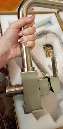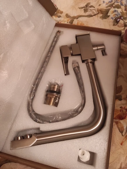 Пришел красавец. Доставка в Астрахань с момента заказа две недели. СДЭК работает плохо, доставляет на перекладных. Посмотрел, покрутил, качество норм, покоцов нет. По замечаниям, которые писали ранее и я обратил на них внимание: зазор между рычагом хол/гор воды и краном действительно большой, но внутри этого зазора все сделано красиво, поэтому смотрится это дело вполне хорошо; что касается тугого открывания закрывания, на рычажке для фильтра есть такое дело, а на хол/гор воде нет, он двигается легко и плавно. В целом смесак смотрится красиво, даже лучше, чем на фото. После установки дополню отзыв.
