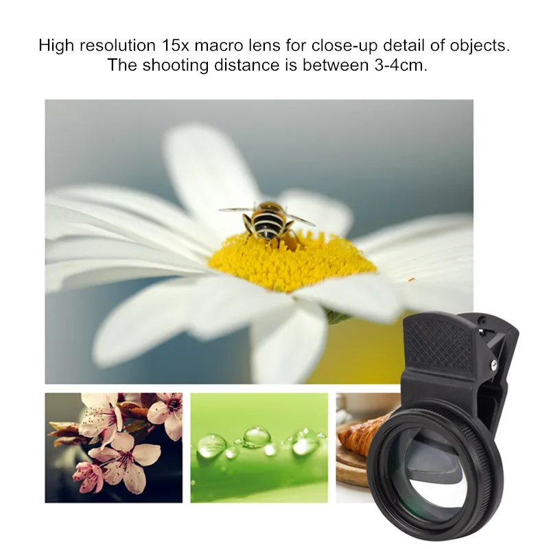 2. 15x макрообъектив высокой четкости с близким расстоянием 3-4 см.