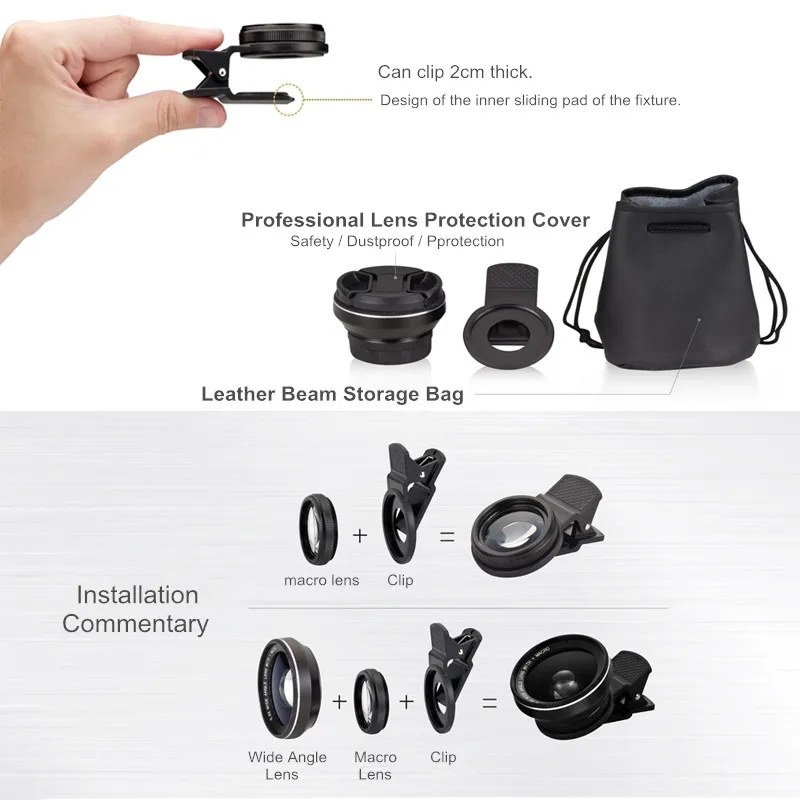1. Это 2 в 1 маленький зажим-съемный HD объектив для мобильных телефонов и цифровых камер.