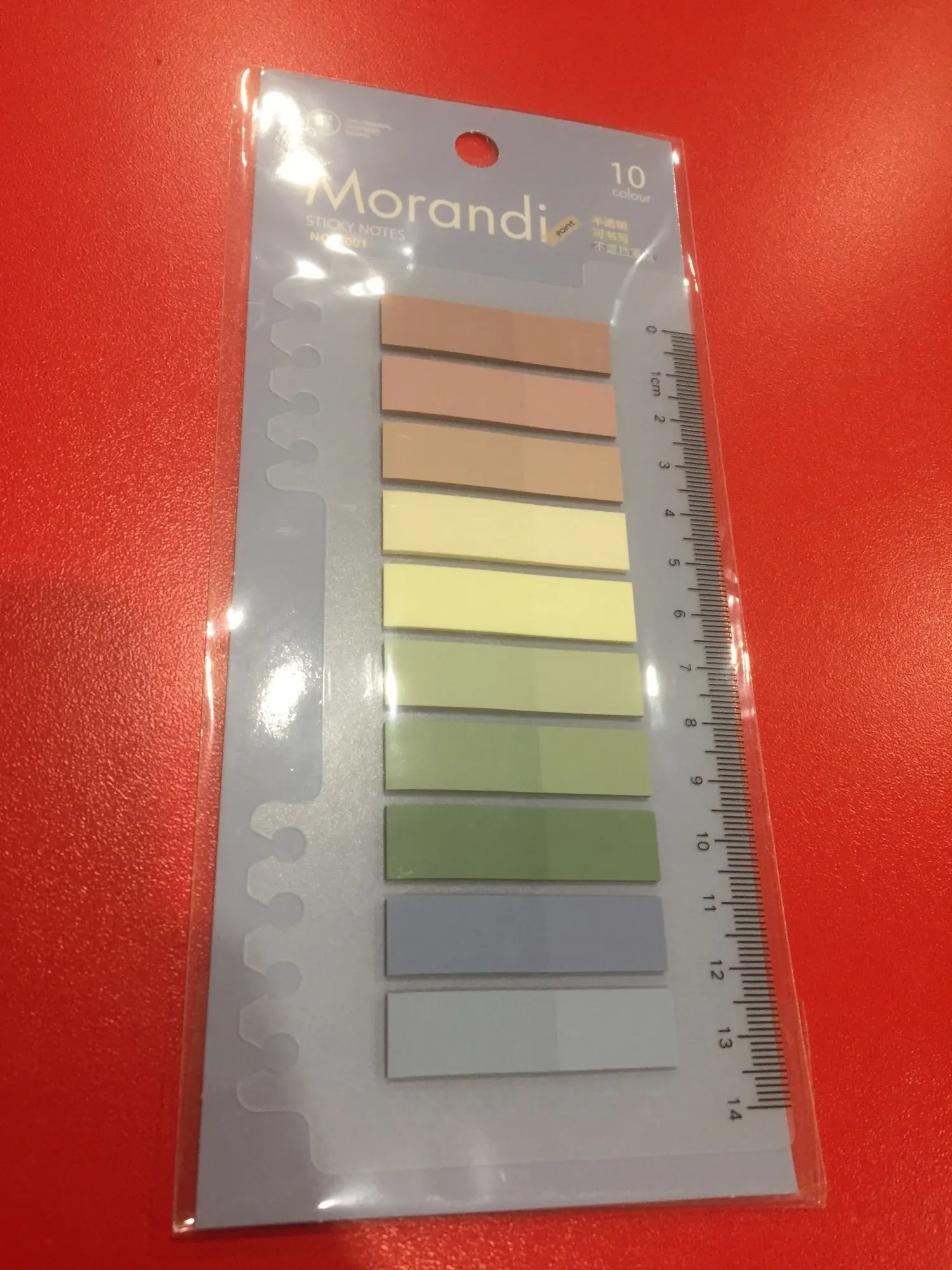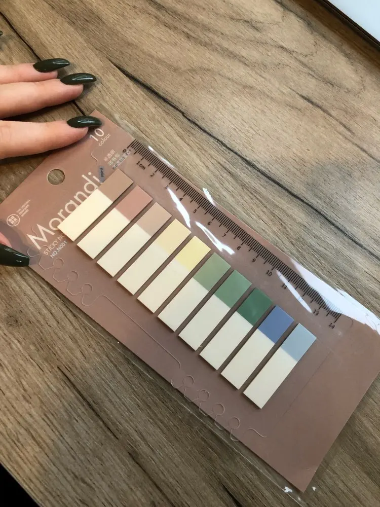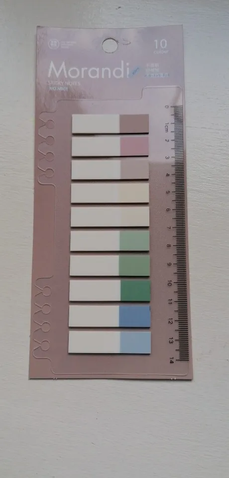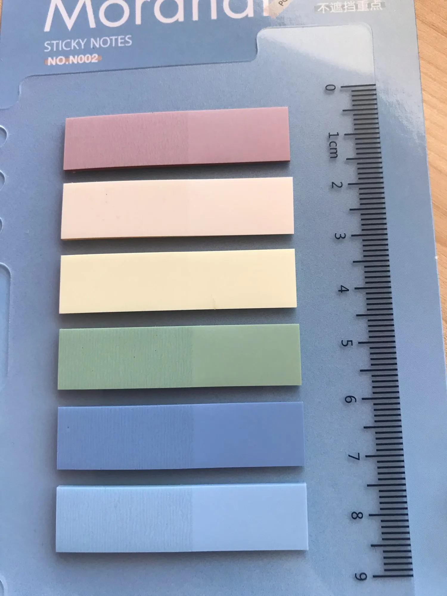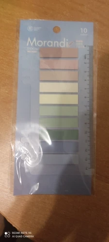 милые закладки. пришли одноцветные, цвета красивые, приятные глазу. клеятся хорошо, даже если переклеивать. для учебы самое то. рекомендую