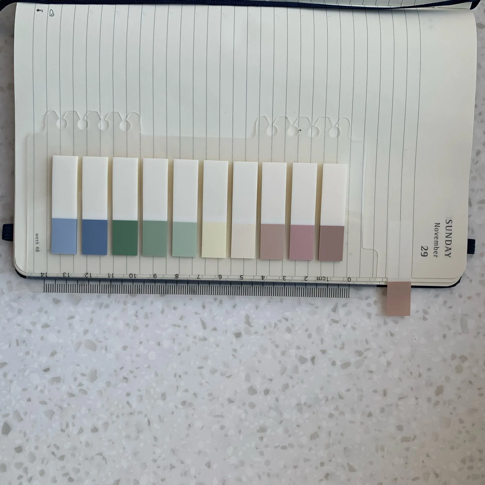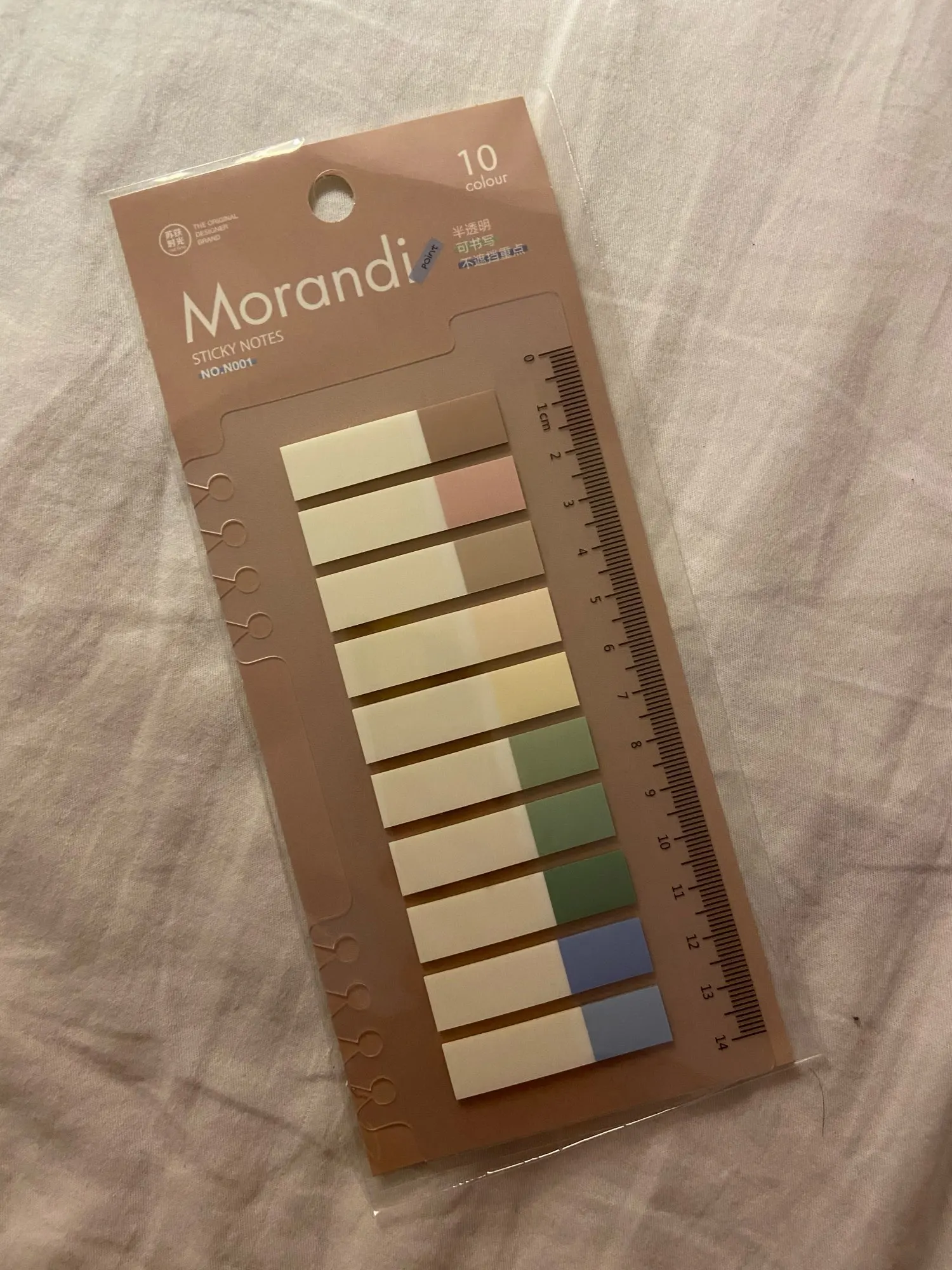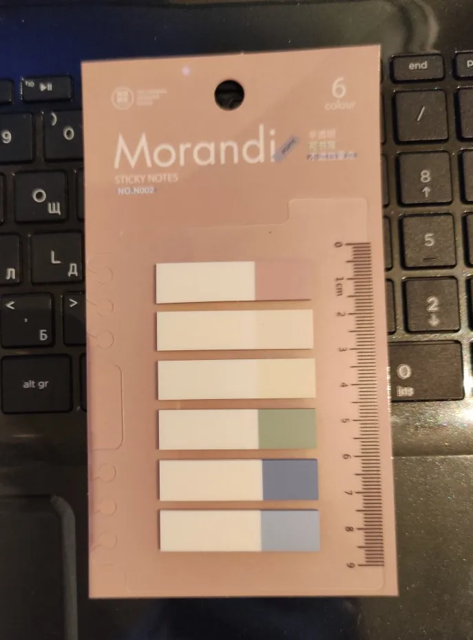милые закладки. пришли одноцветные, цвета красивые, приятные глазу. клеятся хорошо, даже если переклеивать. для учебы самое то. рекомендую