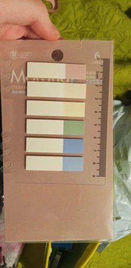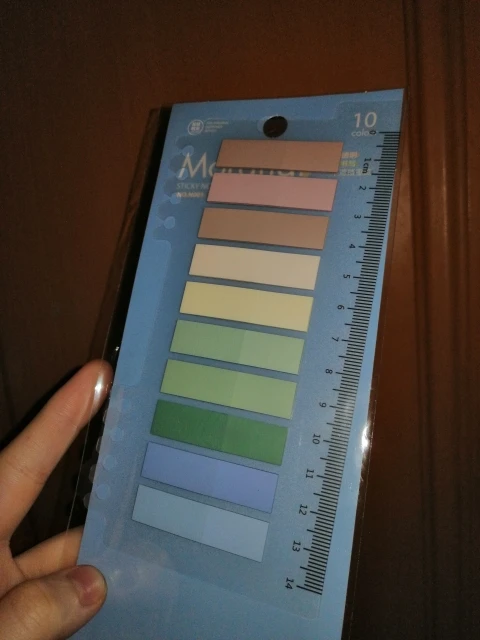 Закладки очень понравились. Они приятных цветов, хорошо приклеиваются и хорошо выполняют свою функцию. В упаковке их достаточно много,хватит надолго.Не теряют клеевую способность быстро, например как бумажные закладки с того же Али. Попросила положить закладки в синей упаковке и мою просьбу выполнили. За это спасибо продавцу. Рекомендую к покупке такие закладки. Не пожалеете.
