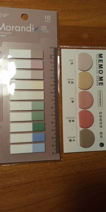 Стикеры, огонь, очень плотные, нежные постельные тона, хорошо клеятся к бумаге, можно писать на них, рекомендую буду брать еще.