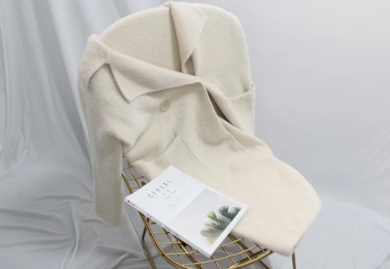Плащ женский шерстяной, с отложным воротником, на одной пуговице, длинный, теплый, весна-осень