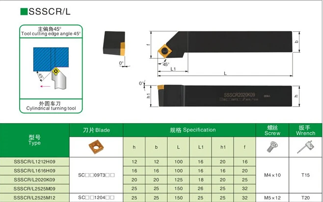 Угол 45 SSSCR1212H09 SSSCR1616H09 SSSCR2020K09 SSSCR2525M09 SSSCR2020K12 ssscr25m12 SSSCL инструменты для поворота правойлевой рукой