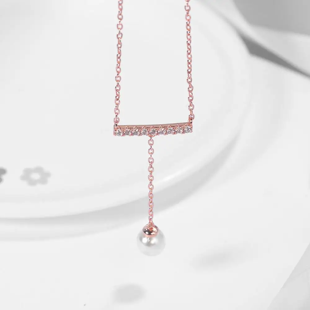 ERLUER ожерелья для женщин розовое золото Кристалл Циркон ювелирные изделия девушка имитация жемчуга модные подвески ожерелье ювелирные изделия для помолвки
