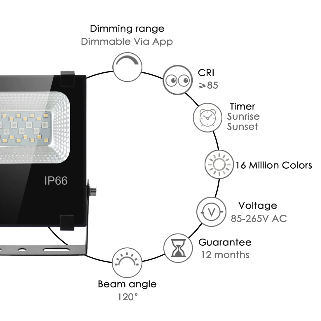 RGB светодиодный прожексветильник 15 Вт Bluetooth открытый умный прожексветильник 110 В 220 В IP66 водонепроницаемый цветной светильник приложение для группового управления