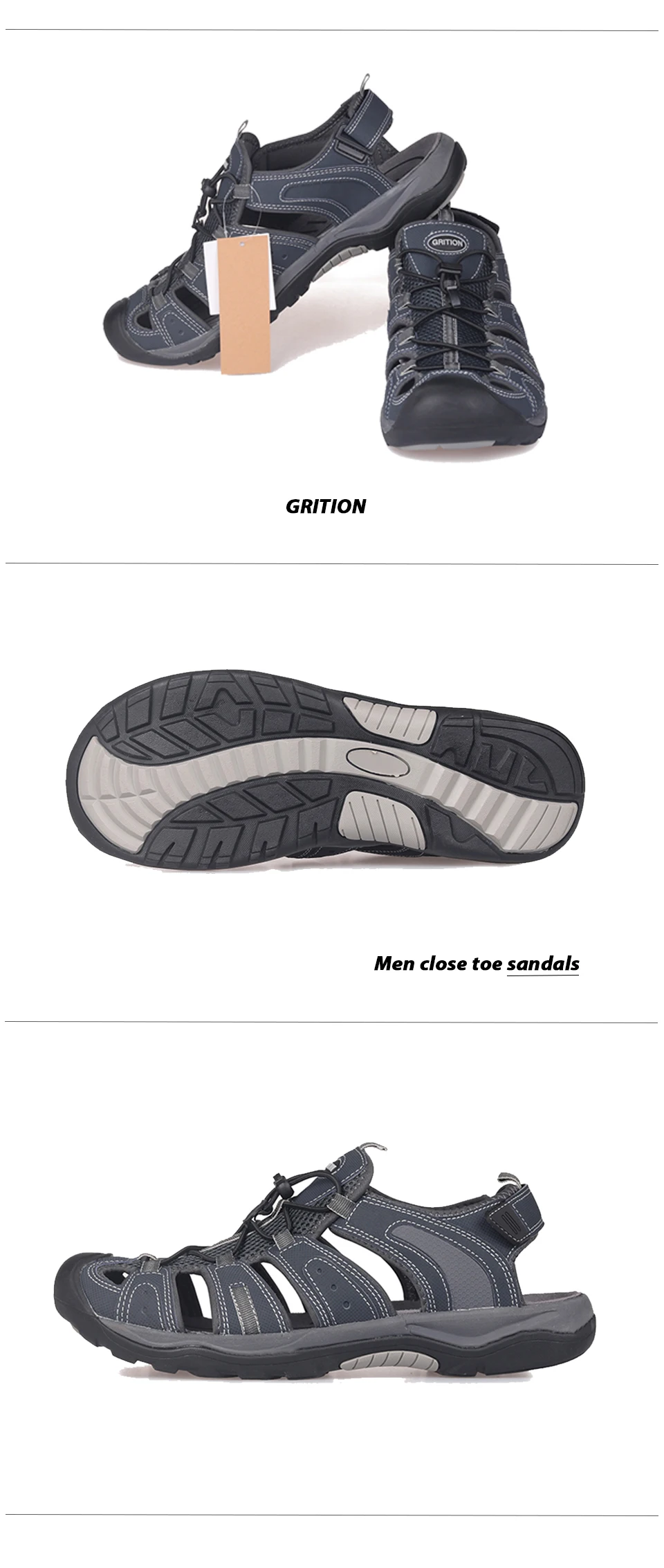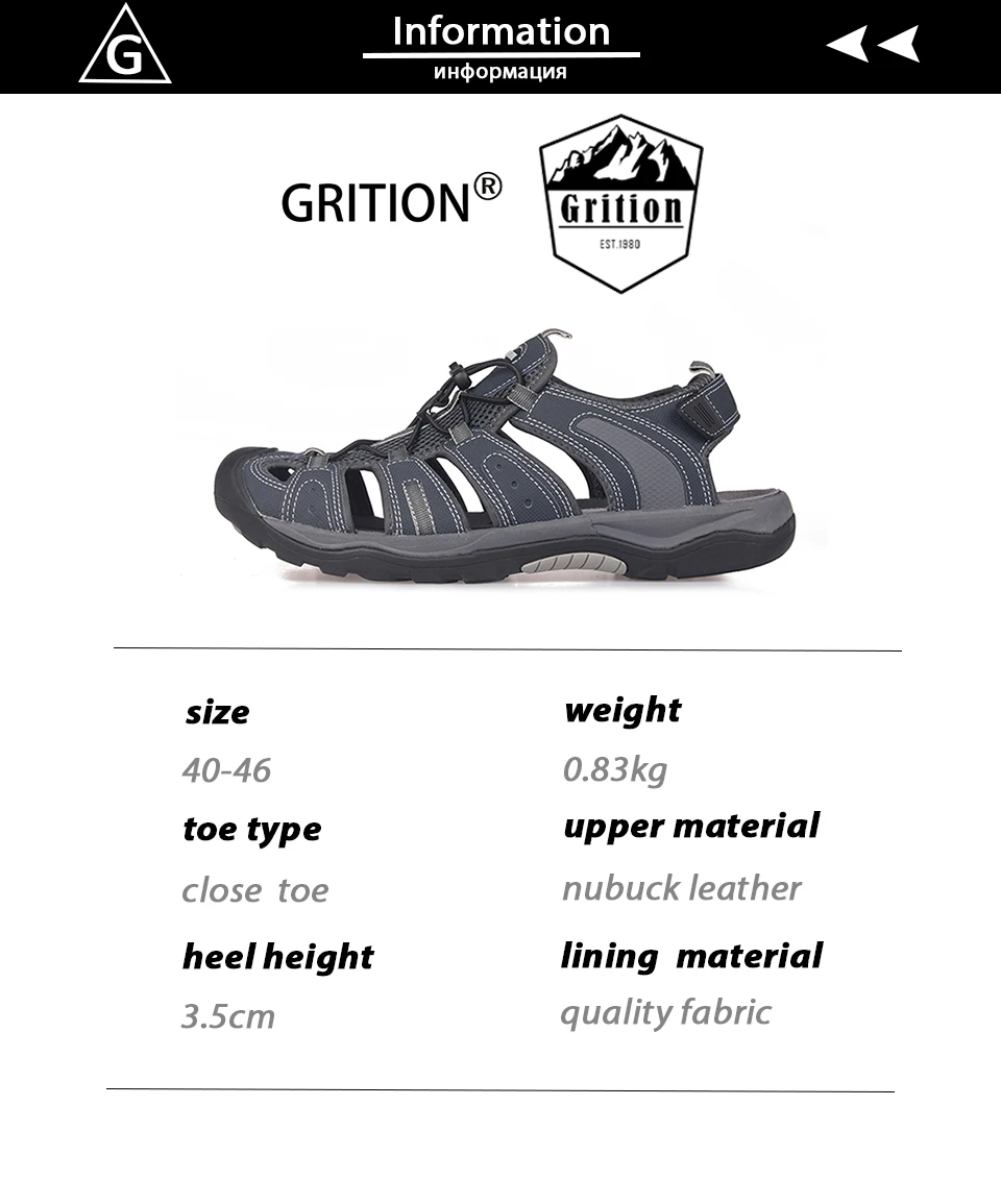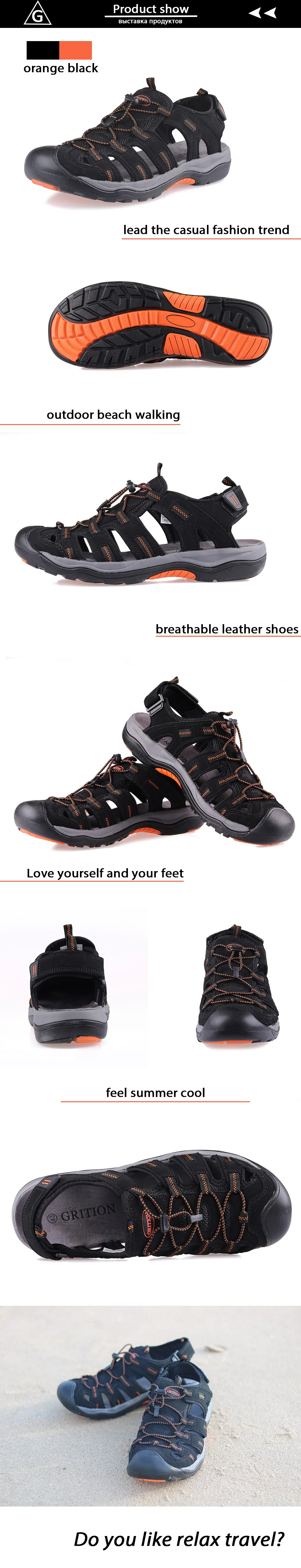 Сандалии GRITION Мужские дышащие, пляжная обувь на плоской подошве, для активного отдыха, Нескользящие, модные повседневные, размер 46, летние шлепанцы
