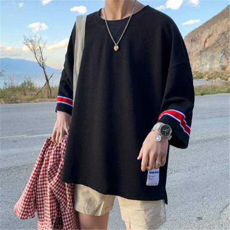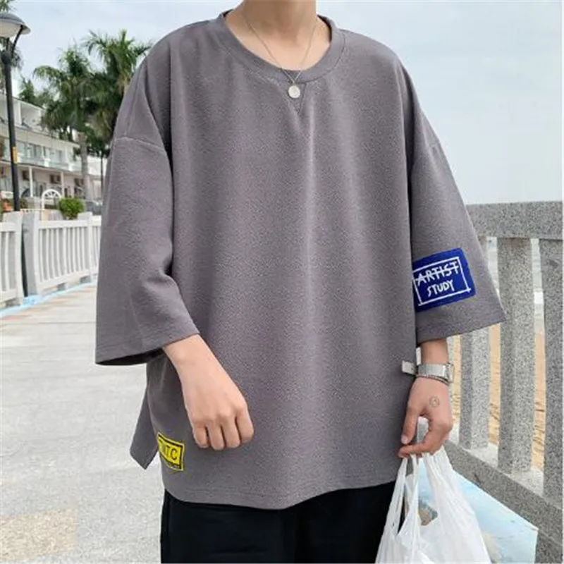 Летняя Корейская мужская Свободная футболка для отдыха, черная и серая футболка с круглым вырезом и коротким рукавом, Мужская одежда, 2019 размера плюс M-3XL