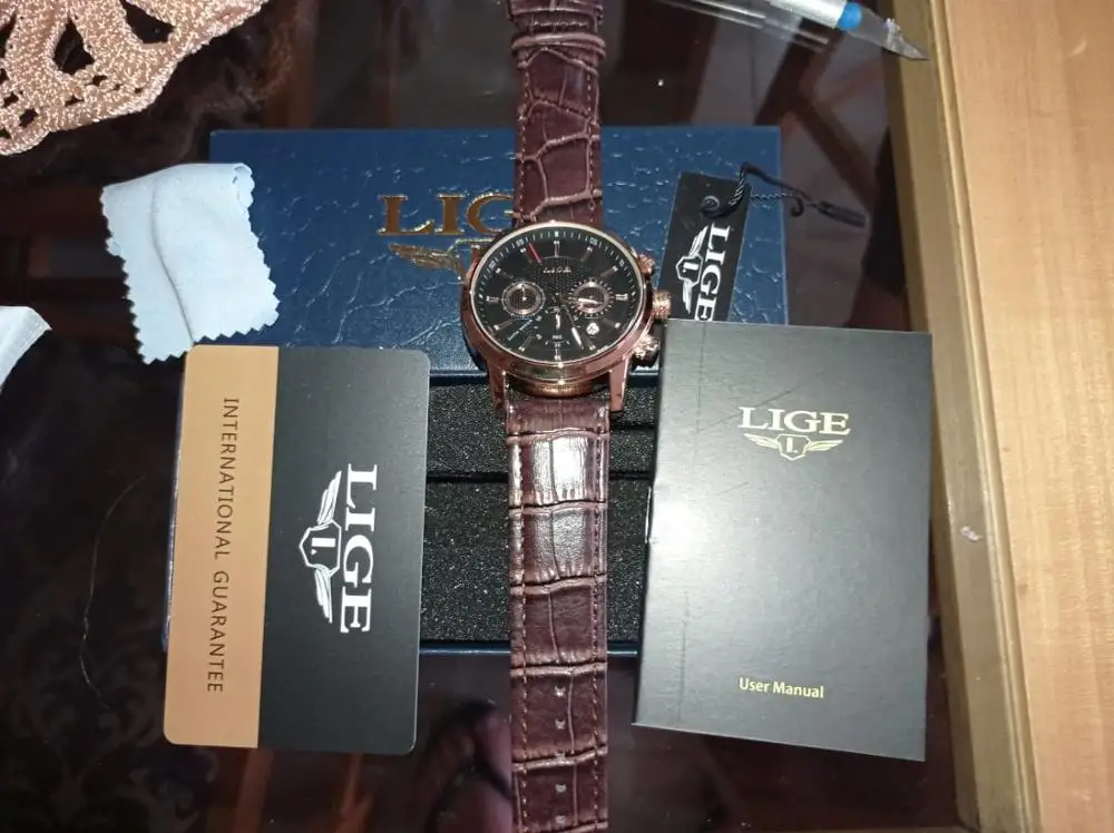Часы наручные LIGE мужские с хронографом, роскошные брендовые водонепроницаемые кварцевые в стиле милитари, с ремешком из натуральной кожи