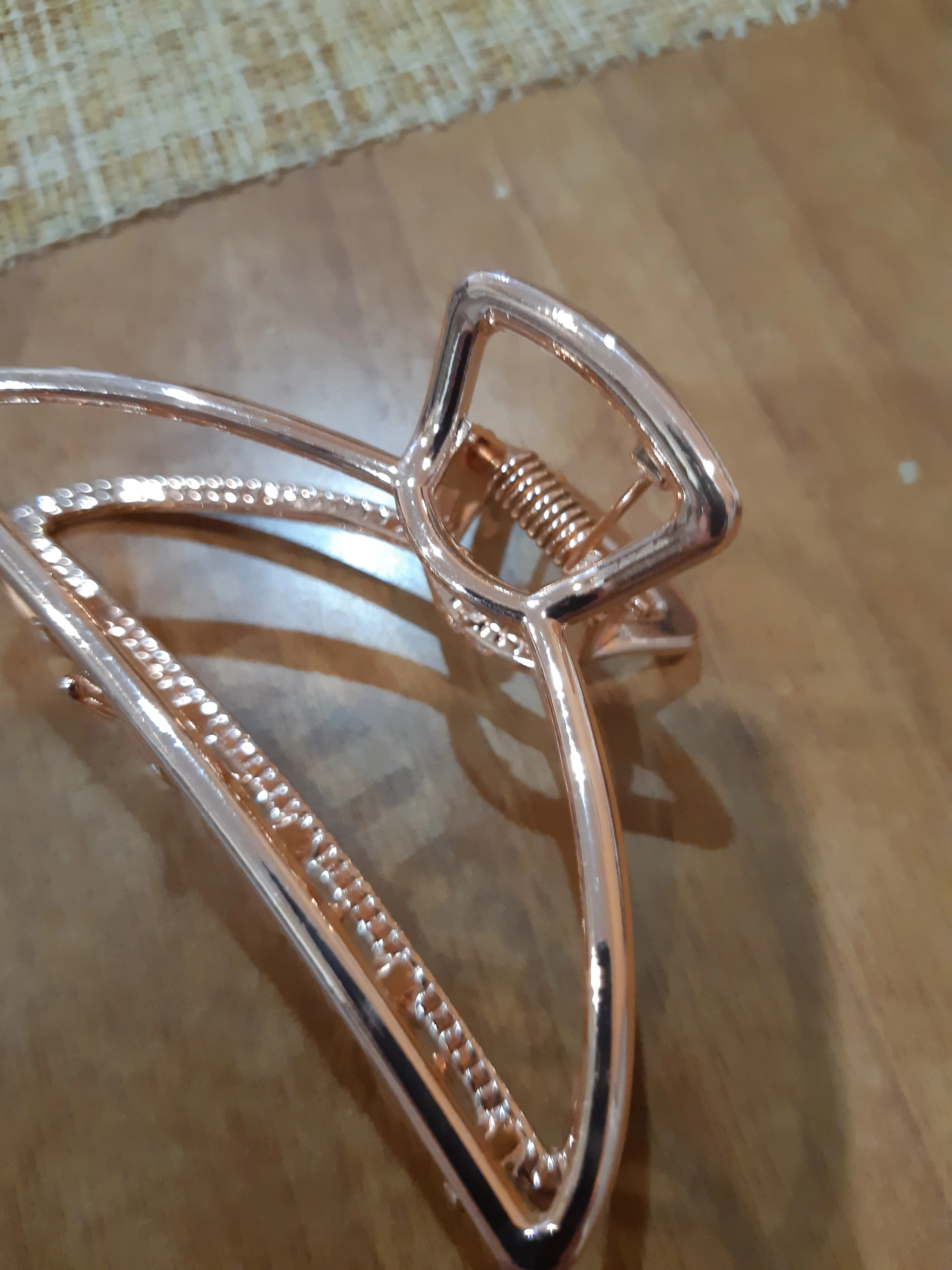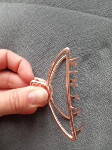 Заколка крепкая, металлическая, соответственно увесистая. Тонкие волосы держит хорошо. Единственное проглядела стоимость доставки и заколочка почти золотой вышла, но тут уж моя вина
