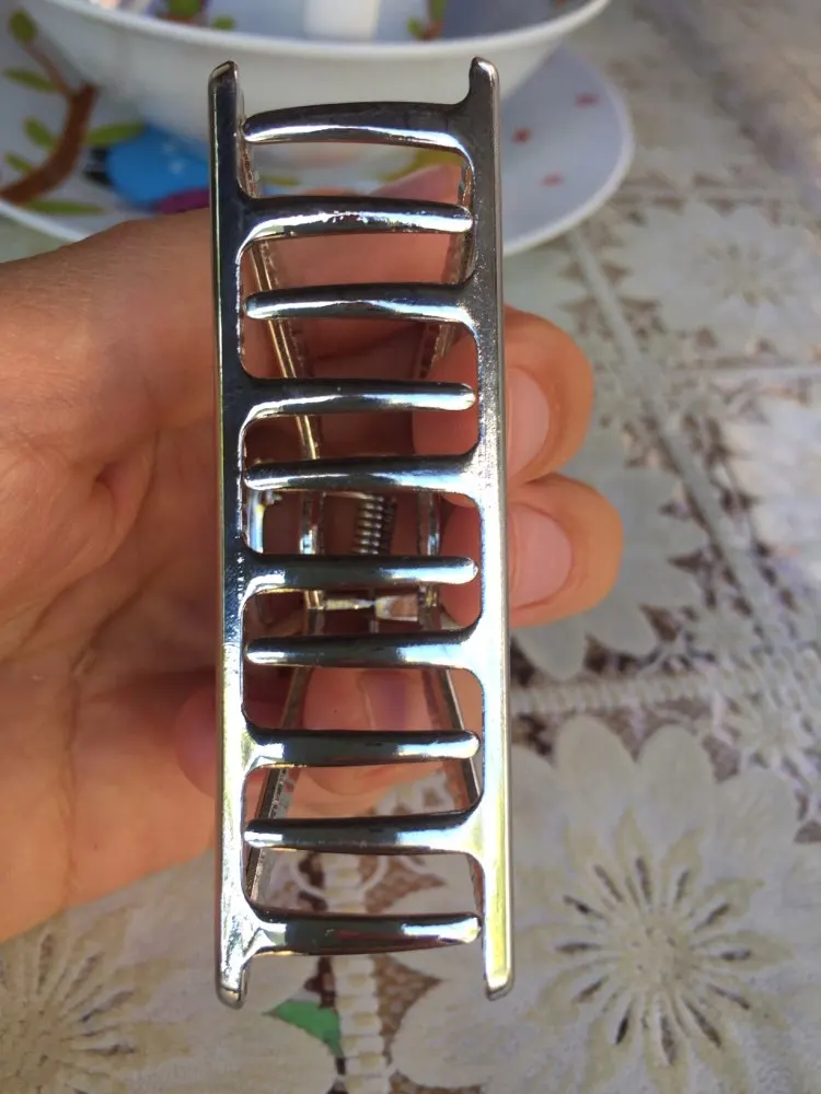 Очень хорошая заколочка! Тяжеленькая и выглядит как натуральный метал нержавейка! Я в восторге от неё! я брала маленькую так как волосы у меня не так чтобы очень длинные. и я люблю как бы приподнимать волосы сверху так что мне хватает и маленькой заколки для этих целей. Но если что я будубоать ещё, потому что выглядит она очень достойно у меня все украшения и аксессуары из нержавейки серебра и белого золота, поэтому такая заколочка идеально подходит! Я в восторге! И держит она очень и очень хорошо! Рекомендую и продавеца и товар. Из минусов только очень дорогая доставка! Срок доставки вышел но я все время наблюдала что номер отслеживается, думаю что долго Почта наша возила потому что пришёл на два дня позже заявленного срока. Всем хороших выходных!