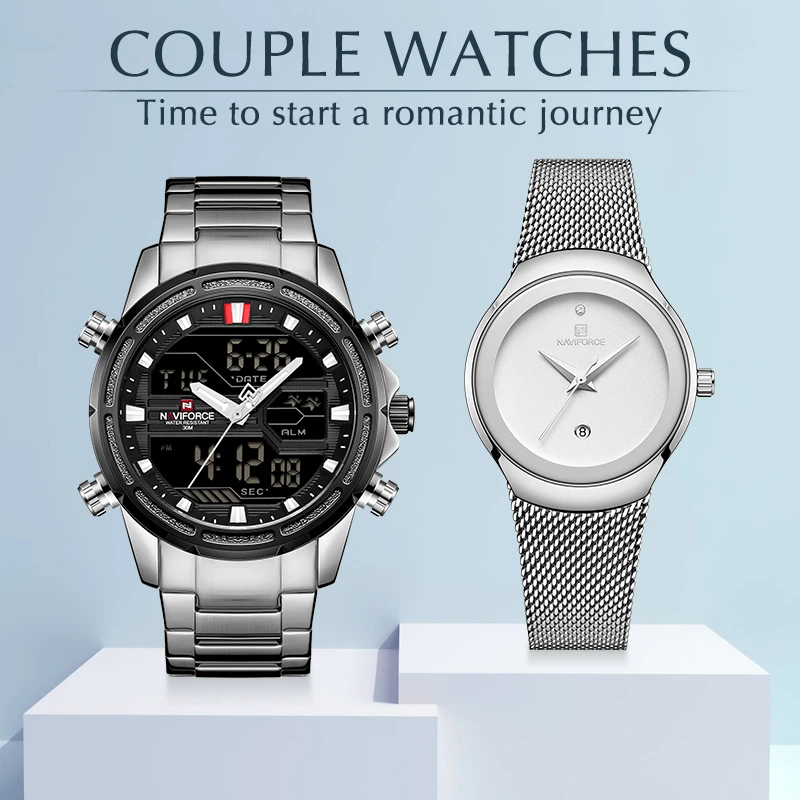 Часы NAVIFORCE для влюбленных мужчин и женщин, модные наручные часы...