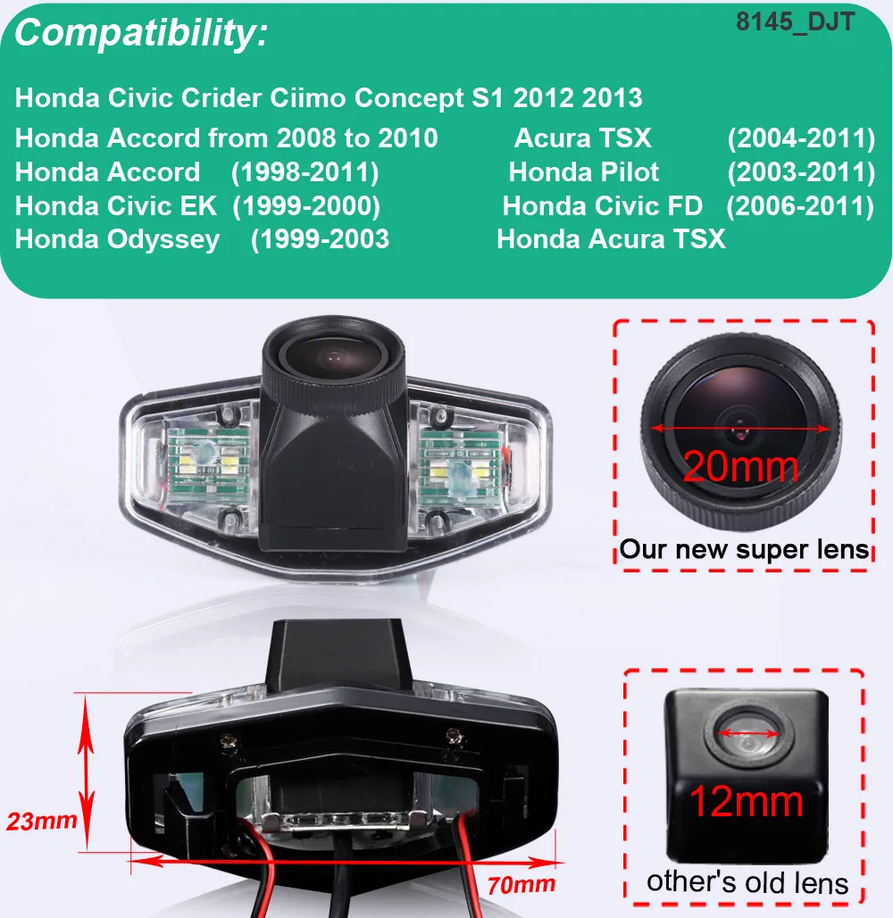 Автомобильная камера заднего вида для Honda Civic FD Acura TSX (1280-720), 1000x2004 пикселей, объектив 20 мм, 2011x2003 пикселей