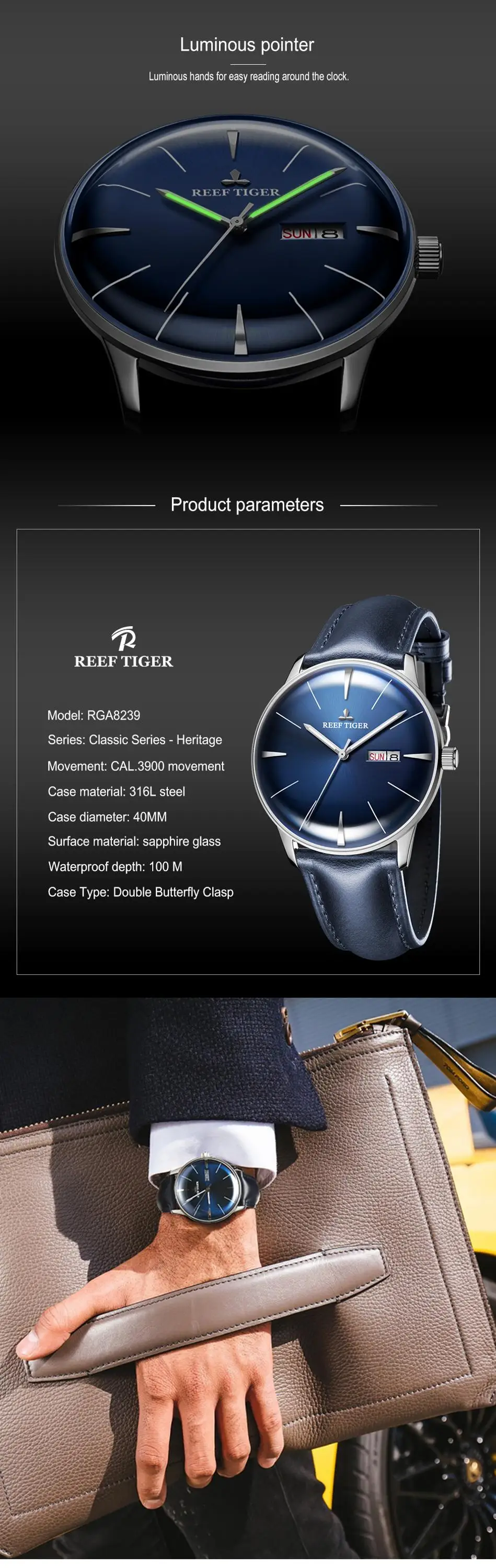Мужские автоматические часы с ремешком из натуральной кожи, RGA8239