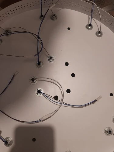 Товар пришел быстро, заказала 10.12, курьер доставил 14.12. Всё работает, НО огорчило отсутствие комплектующих ( 4 шайбы, 4 гайки), сразу установить люстру не удалось, искали подходящие гайки по магазинам. Пульт работает (пришел без батареек), в подарок положили usb фонарик. Цвет менят (синий, желтый, белый), яркость регулируется. В целом товаром довольна, смотрится симпотично. Рекомендую.