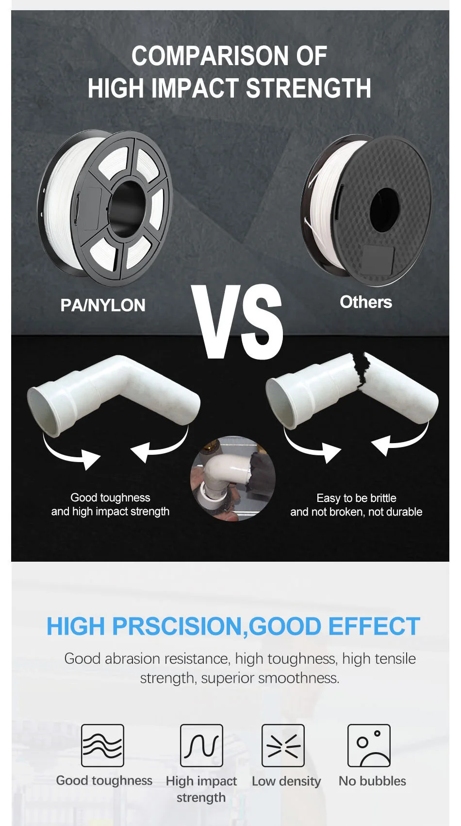 Нить для 3D-принтера SUNLU PA Nylon V2, высокопрочная нейлоновая нить 1,75 мм, 1 кг, материал для 3D-печати