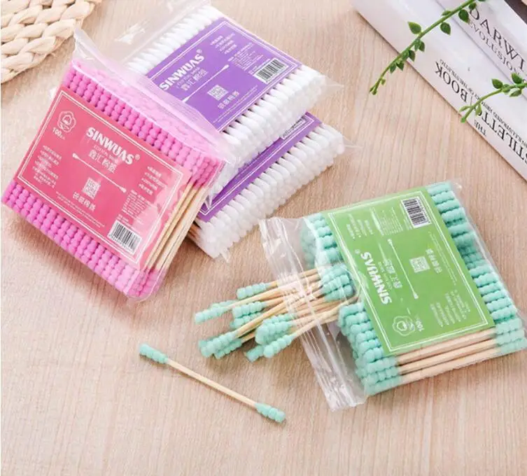200 шт. ватные тампоны с двойной головкой, женские ватные тампоны для макияжа, наконечники для медицинских деревянных палочек, чистка ушей в носу, ватные тампоны, инструмент для макияжа