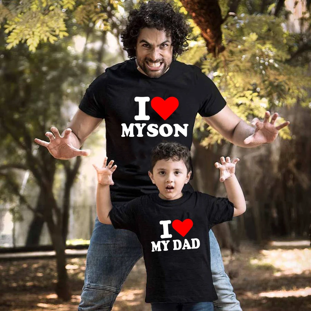 1 предмет, летняя мужская футболка детская одежда Одинаковая одежда для семьи с надписью I LOVE MY DADSON THIS MUCH футболка для папы и сына
