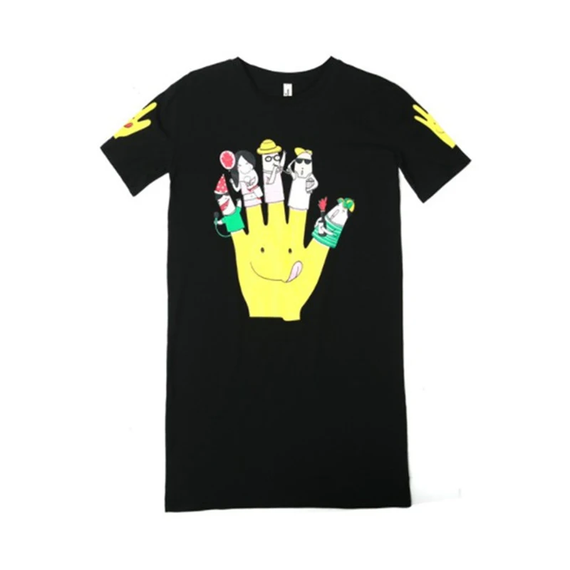 Фирменная футболка, женские Уникальные топы, футболка, летняя, большого размера, M-5XL, длинная Повседневная футболка с принтом в виде мультяшных пальцев, с коротким рукавом