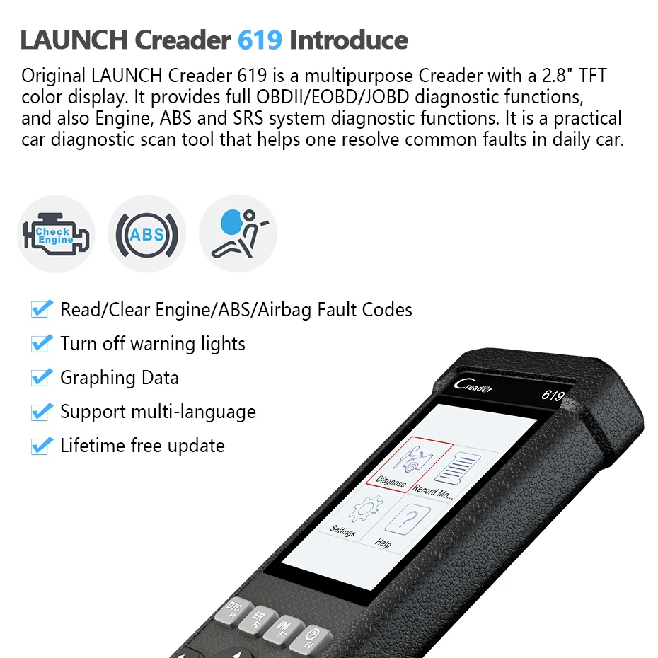 Launch CR619 OBD2 Scanner feature 1Airbag SRS System diagnostic