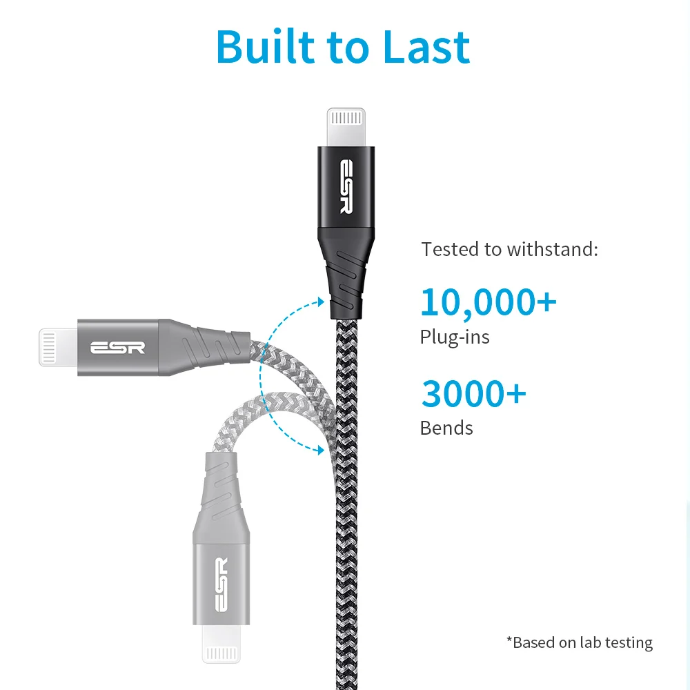 Кабель ESR с USB C на Lightning, MFi Кабель с разъемом Lightning для быстрой зарядки iPhone 13, 12, iPad, MFI Кабель с разъемом Lightning для передачи данных
