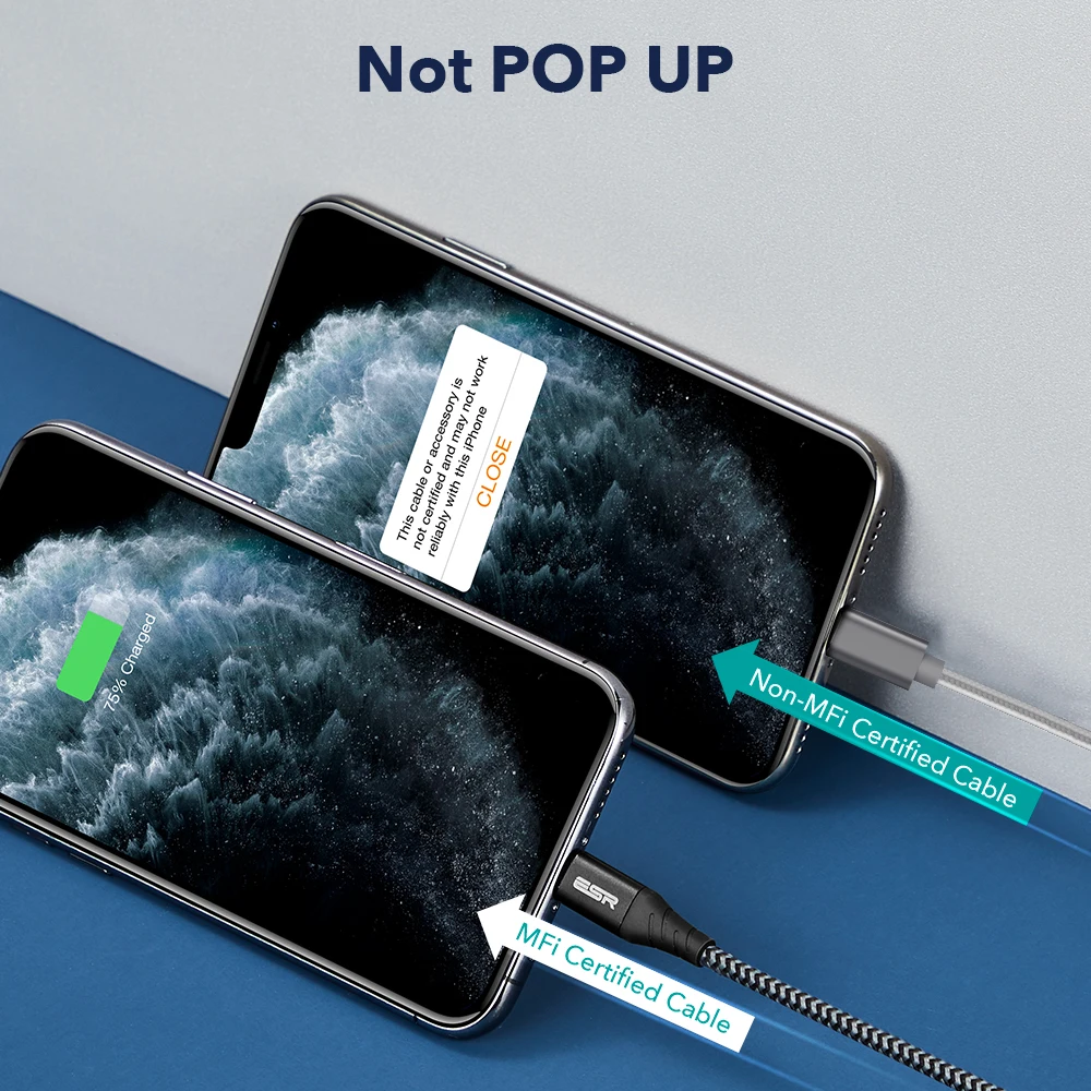Доставка была очень быстрой. Кабель работает с моим iPhone. Мне нужно будет проверить его в долгосрочной перспективе, чтобы узнать, есть ли какая-либо разница между MFi и обычными разъемами lightning.