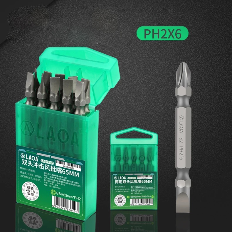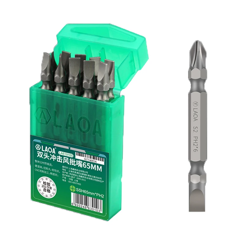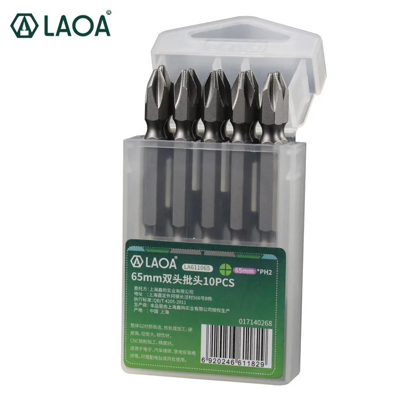 Биты для шуруповерта LAOA PH2 с двойной головкой, 65 мм, до 58HRC, 10 шт.